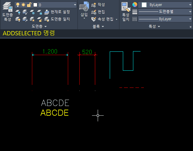 그림에서 보다시피 ADDSELECTED 명령으로 선택한 객체와 동일한 특성의 객체를 바로 그립니다.