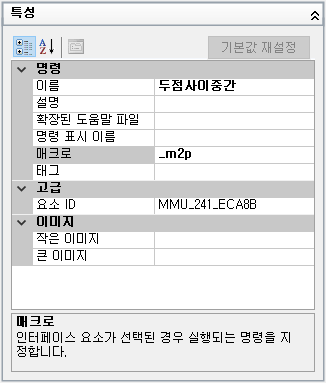 2) 새 명령이 추가되면 오른쪽 창에 특성 창이 보이고 이름과 매크로를 수정합니다.
