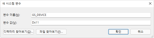 DirectX 11로 변경하려면 윈도우 환경 변수에 값을 추가하면 됩니다.
