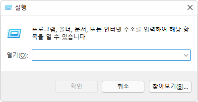 키보드의 윈도우키 + R을 눌러 실행을 엽니다.