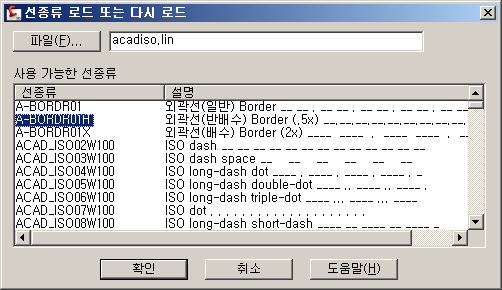 아래와 같이 선종류 창을 띄우고 "사용가능한 선종류"가 있는 창을 한번 마우스로 선택후에